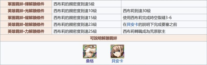 另外值得一提的是, 西布莉本人亦有提升攻擊力2回合的技能(可同時為[戰爪亞龍]提升), 所以即使不入上述3個陣營, 也可以外掛到任何隊伍裡出擊