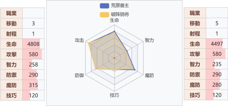 獸主(步/左) – 生命/魔防較高, 步槍騎互克, 移動3, 步行移動方式
