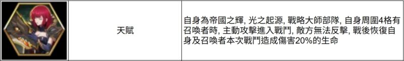 – (續)戰後恢復自身以及召喚者本次戰鬥造成傷害20%的生命