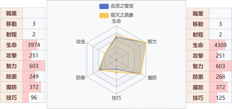 – 反之亦然, 如果敵方魔防較高, 則魔女輸出會較仙靈優勝