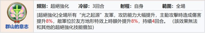 超絕裡面的特殊效果, 除了主攻進戰和範圍攻擊都有15%增傷之外. 還附帶被反擊時遭受傷害-20%