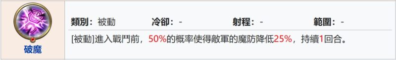 – 無視敵軍魔防, 不能透過任何手段去免疫