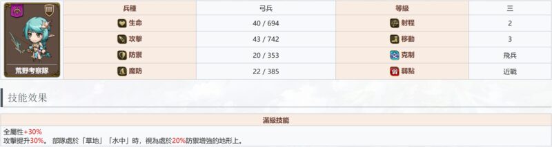 – 進入防禦地形, 同時也觸發了弓兵營的[密林遊俠], 增傷30%