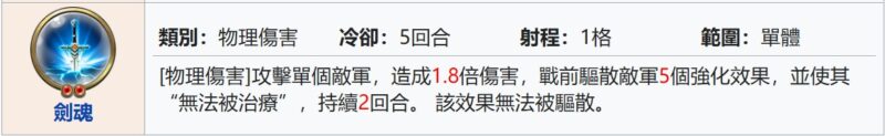 – [END模式]持續時間每+1回合, 主攻進戰前, 驅散敵方1個強化, 最多3個