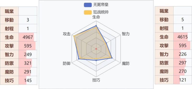 帝皇(步/左) – 整體屬性比騎兵線高, 攻擊力相同, 移動3, 射程1, 步行