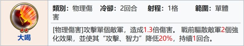– 戰前驅散敵軍2個強化效果, 並降其攻智20%