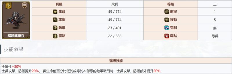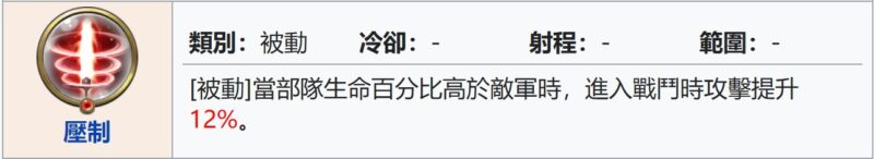 統帥(騎) – 血量80%以上時, 進入戰鬥造成傷害+10%