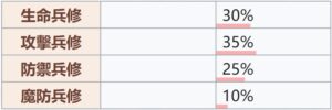 生命30% 攻擊35% 防禦25% 魔防10%
