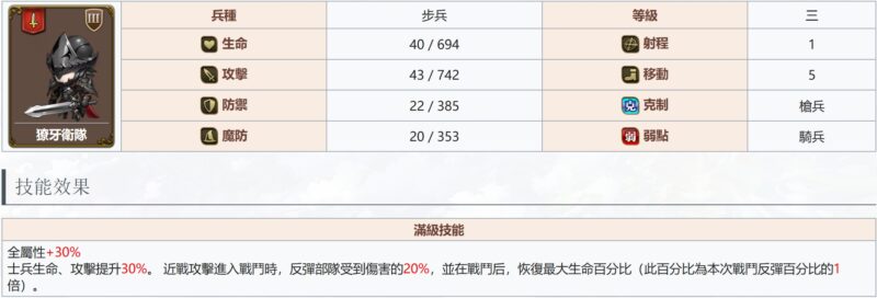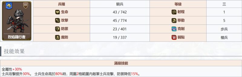 統帥(騎/右) – 整體屬性比步兵線低, 攻擊力相同, 移動5, 射程1, 騎行